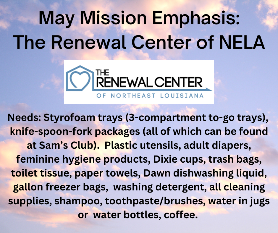 | | May is almost over and we have yet to collect any items in our mission trunk! Please, if you are able, the Renewal Center (formerly DeSiard St. Shelter) would be most grateful for anything you can donate! | | Arrangement by Laura Duke and Ellen Prather | | | | If you have found a space of community, or healing, or hope at Northminster and believe in the work we are doing, please consider supporting us financially so that we will be able to continue creating spaces like this in all the days to come. Just click here, or scan the QR code with the camera on your phone. | | | |