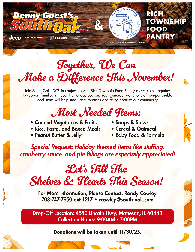 As the weather cools down, I encourage everyone to stay warm, stay mindful, and remember that Rich Township has programs and resources available if you or someone you know needs assistance. Do not hesitate to reach out. We are here for you.