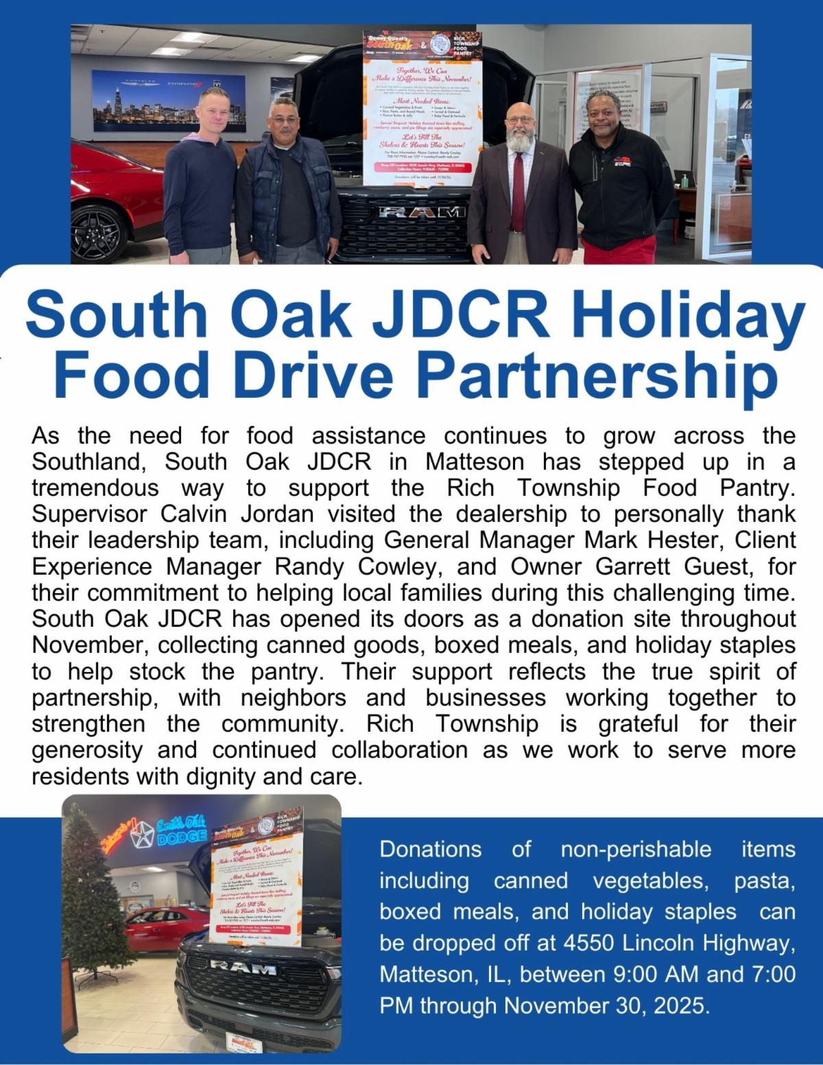 This month, our Holiday Giveaway reminded me once again of the heart of Rich Township. Families came with gratitude, our volunteers worked with incredible dedication, and our staff showed the compassion that defines who we are. I want to thank our Food Pantry team and every partner who stepped up to support our residents during a time when so many are feeling the impact of SNAP reductions. Because of all of you, families walked away with dignity, care, and reassurance that their community truly cares.