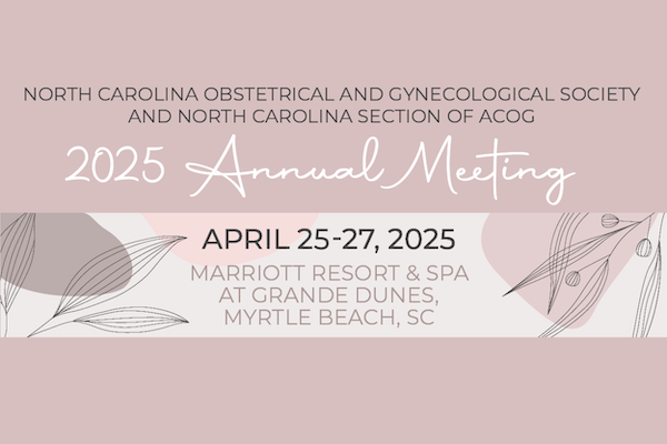 The NC Ob/Gyn Society and the NC Section of ACOG will hold the 2025 Annual Meeting from April 25-27 at the Marriott Resort & Spa at Grande Dunes in Myrtle Beach, South Carolina. Learn more or register.
