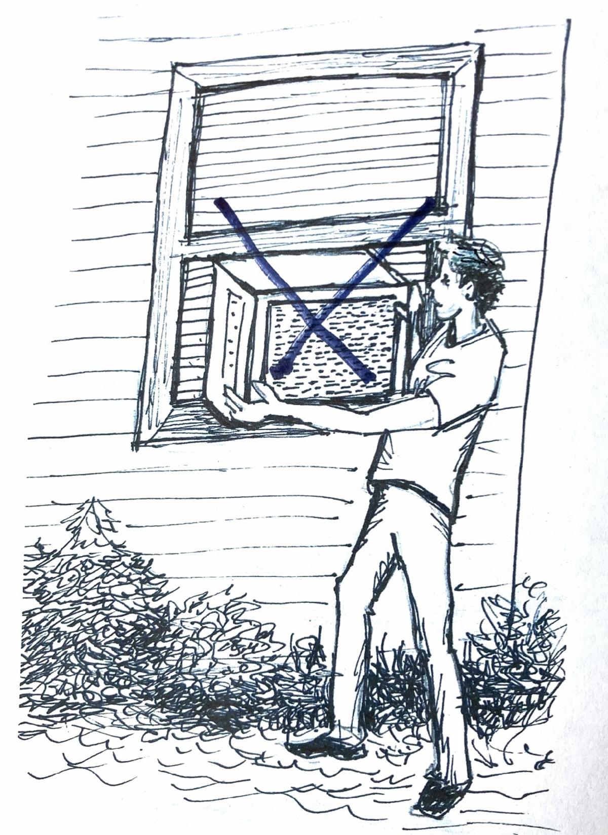 | | Image description: A man lugging a window air conditioner, with an "X" through the air conditioner. Thank you Marcia Cooper for this drawing! | | Join Our Climate Efforts | | |