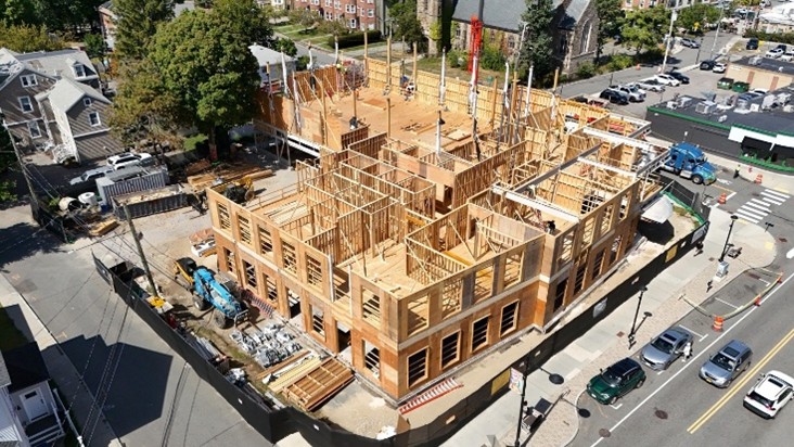 2 - The Cooper Center Project was built primarily with wood-framed construction and was a runner up in the Massachusetts Clean Energy Challenge Embodied Carbon Reduction Challenge. More information about this award can be found here.