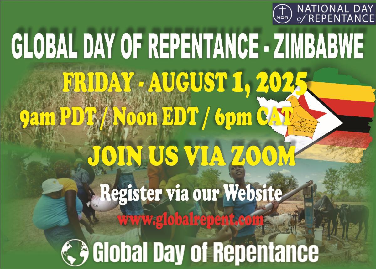 And thus, with our contact in Zimbabwe - Bishop Adonai - we have arranged to have a Global Day of Repentance - on Friday, August 1, 2025 - with a Zoom meeting starting at noon EST / 9am Pacific / 6pm CAT.