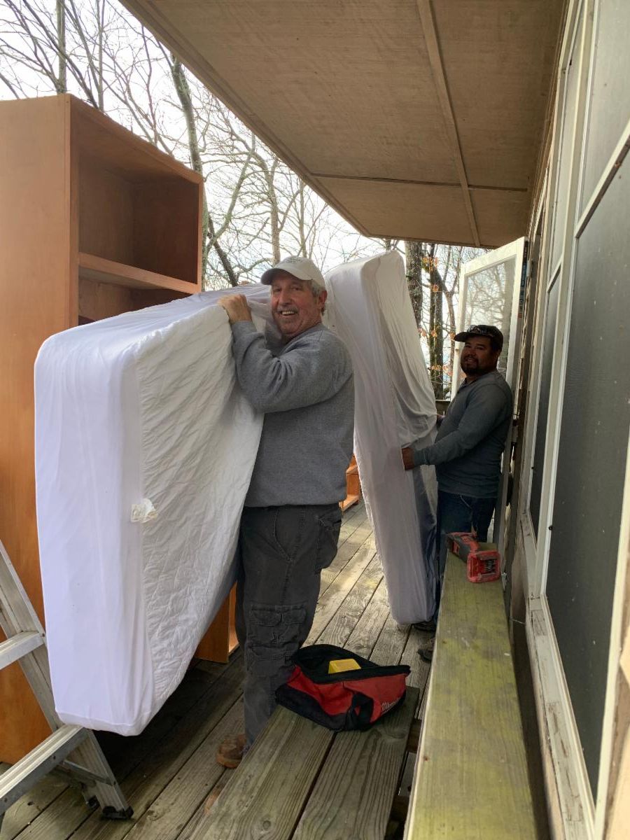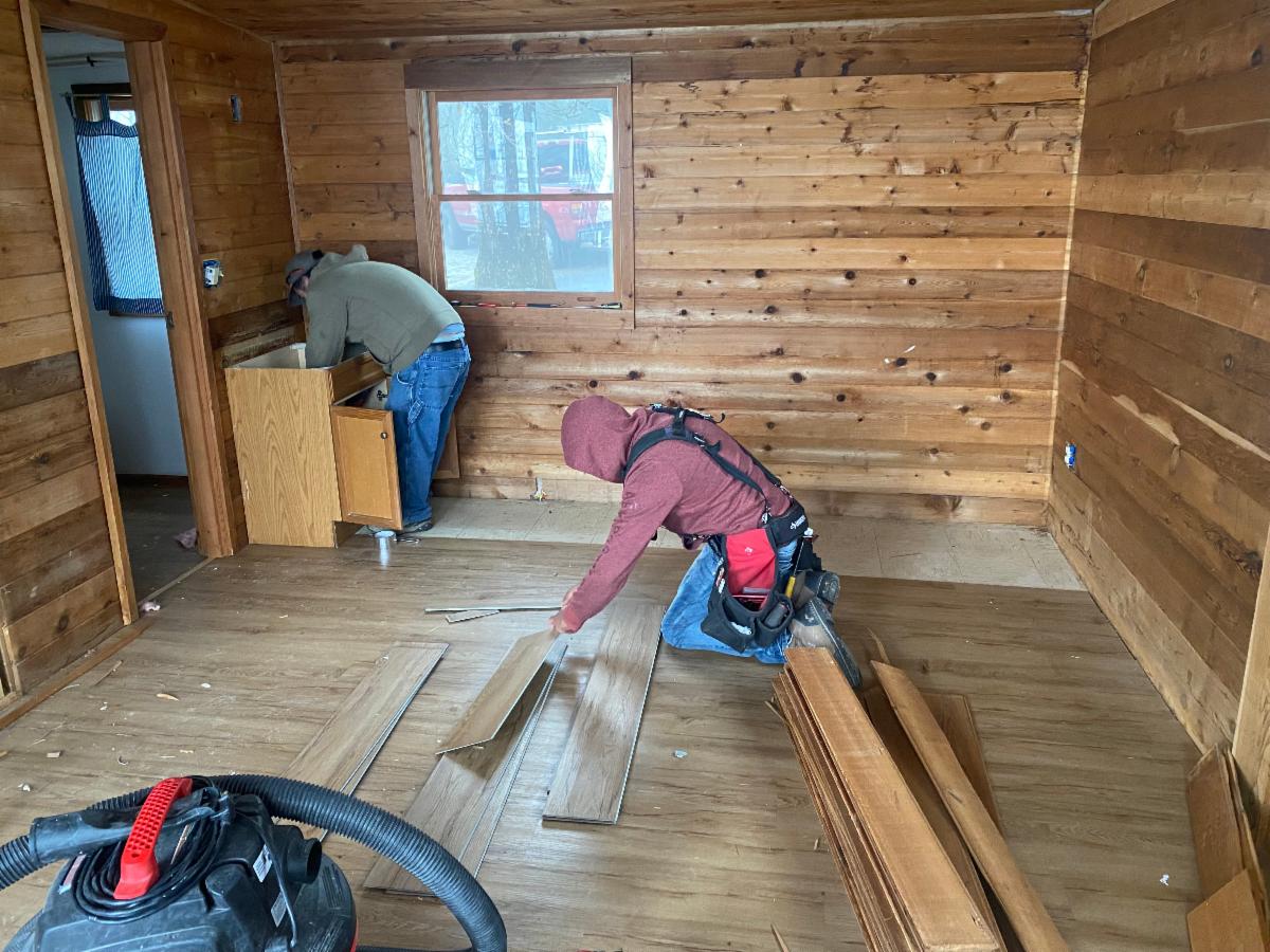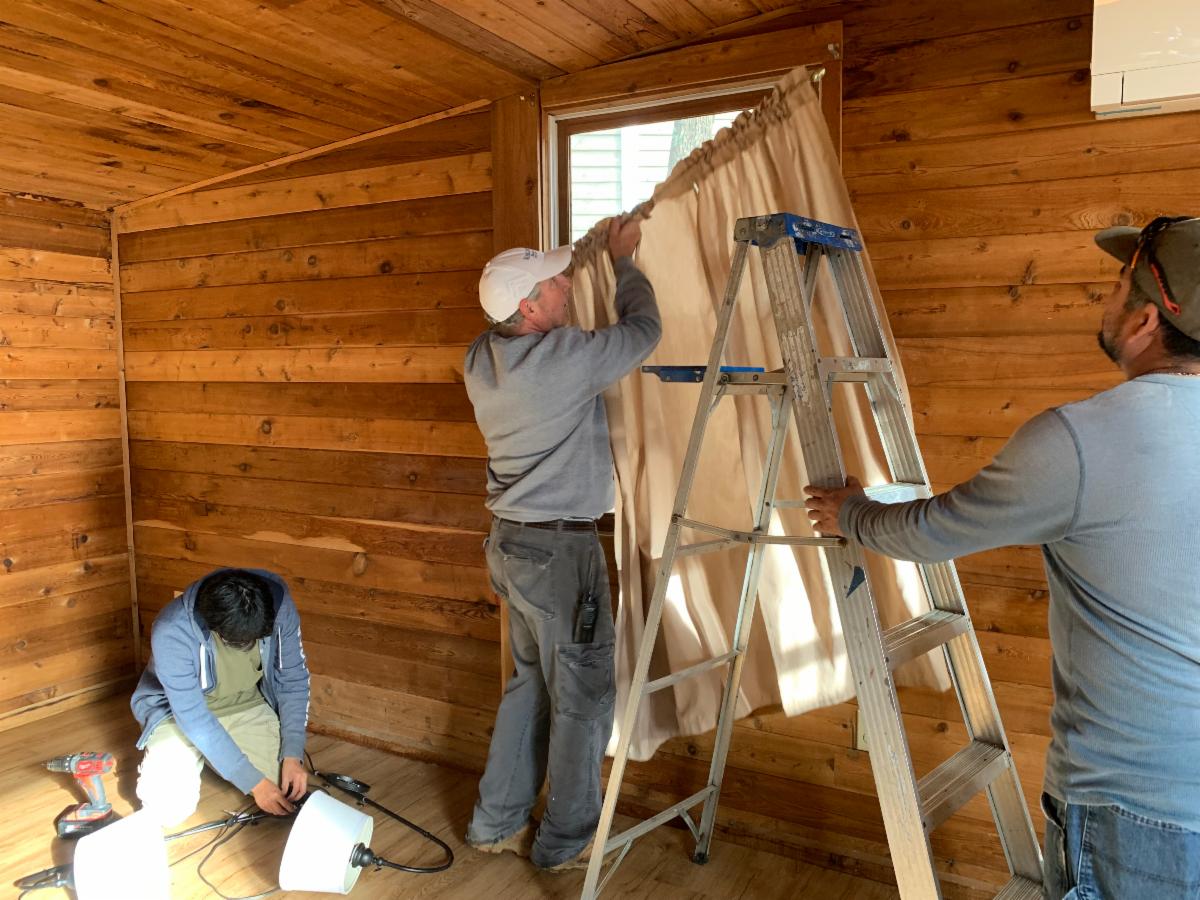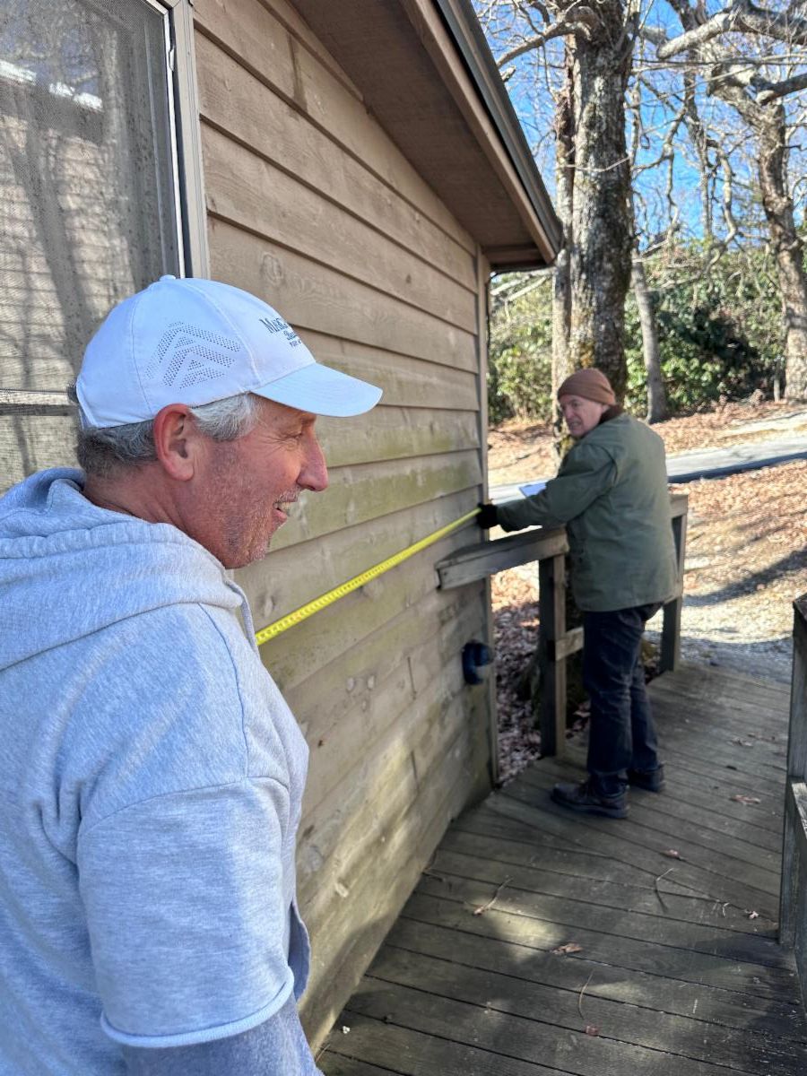 We are delighted to be renovating three duplexes -- measuring spaces for a revised cabin design, removing the furniture and everything!!