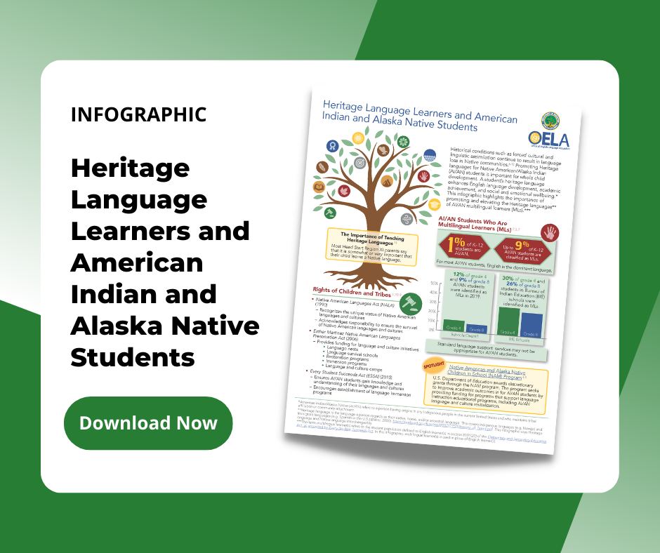 OELA, in collaboration with the National Committee on Effective Literacy (NCEL), and the National Association of English Learner Program Administrators (NAELPA), is hosting a webinar to share research and resources on literacy development for multilingual learners. Presenters will discuss best practices and leadership actions to promote effective literacy programs that honor the multilingual brain and leverage the linguistic and cultural assets of multilingual learners. Registration details available soon.