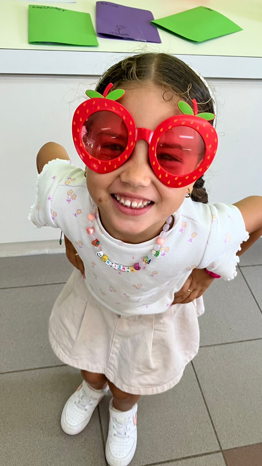 Mijn onderwerp heet Sparkles, ze is een unicorn. Ik was onderweg naar Spanje en was in het vliegtuig. Ik ben haar kwijtgeraakt! Ik had haar in mijn rugzak gestopt, maar wanneer ik mijn water wilde drinken, kon ik haar niet meer vinden. Ik ging terug rennen naar het vliegtuig en vond Sparkles weer. Hij lag precies op de plek waar ik had gezeten! Ze zat gewoon rustig TV te kijken!