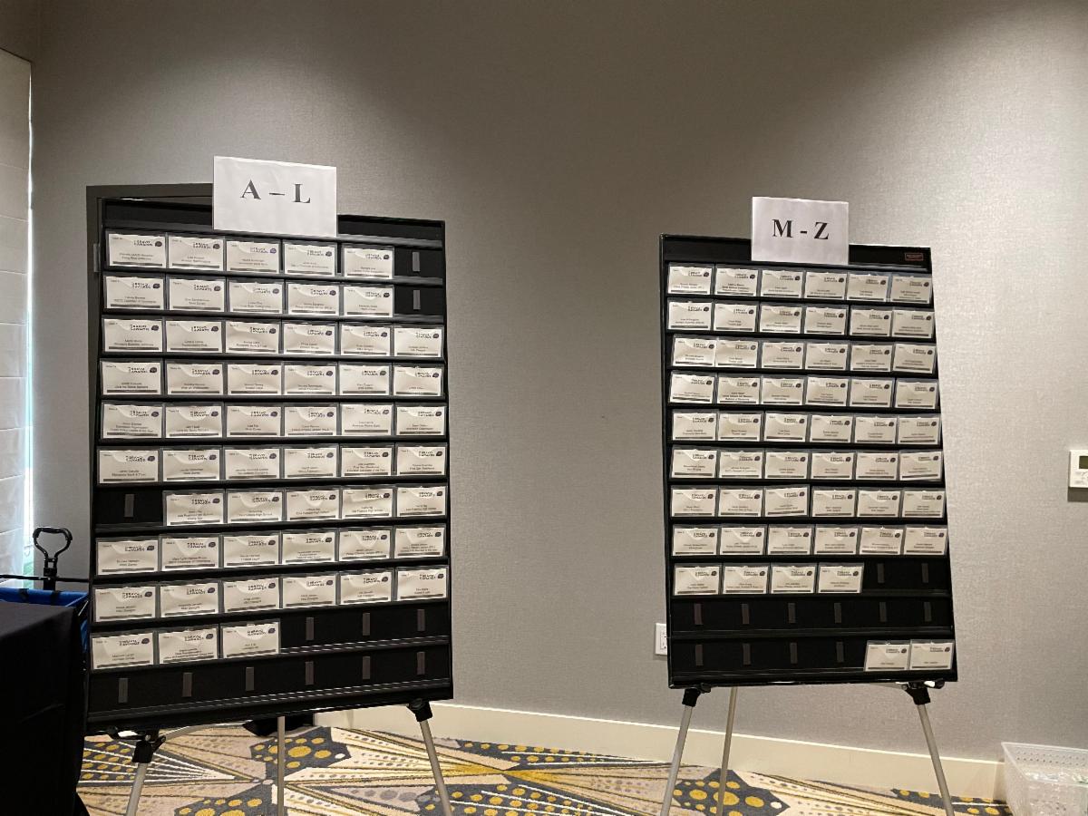 With Easy Event Hosting's Name Tag Tamer®, you can ensure smooth check-ins and seamless introductions at your next event. Collecting name badges at registration from a Name Tag Tamer® display board is a breeze. This easy-to-use display system empowers attendees to quickly connect with people by visually identifying names and titles. This accelerates socializing and initiates business relationships.