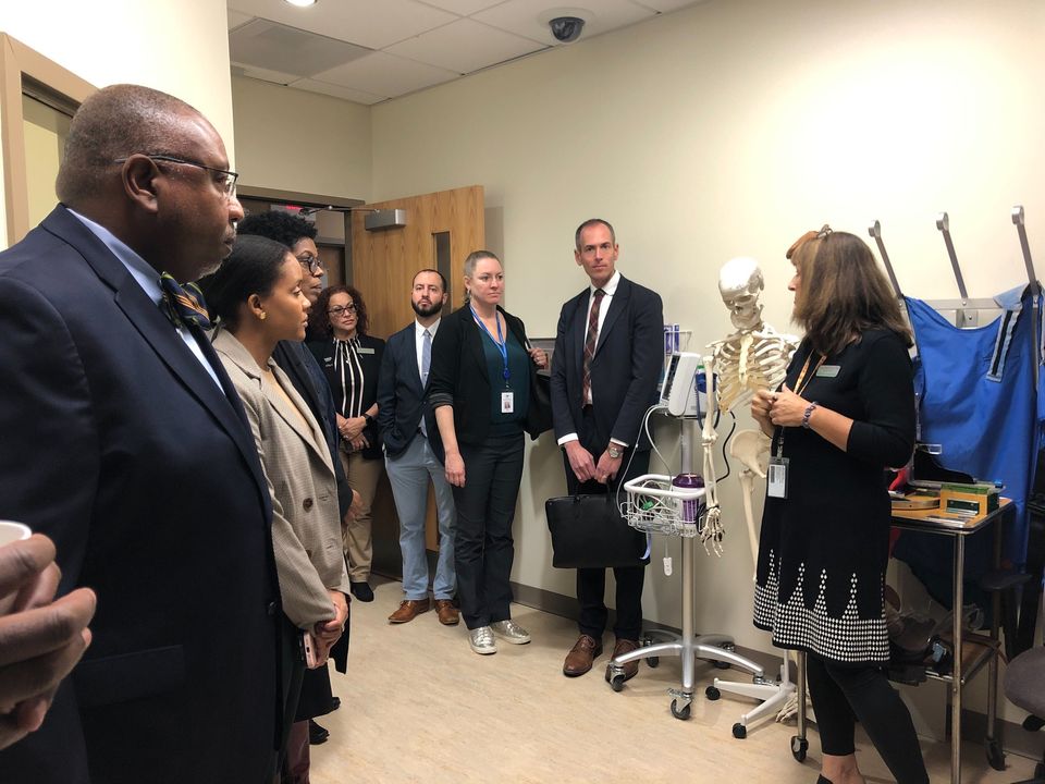 On October 17, I was delighted to be at Holyoke Community College with Education Secretary Patrick Tutwiler, Labor Secretary Lauren Jones, Department of Public Health Commissioner Robbie Goldstein, Nicole Obi, Senator Adam Gomez, Representative Pat Duffy, Holyoke Community College President George Timmons, and others to cheer the formal announcement of FREE community college for ALL nursing students in the Commonwealth as part of STEM week. The labor market blueprint for the Connecticut River Valley shows a supply gap of well over a thousand nurses needed to meet demand. I’m grateful to Senate President Karen Spilka for leading the Senate to make this historic investment and for propelling the work that’s ongoing right now to make community college free for all by the fall of 2024.