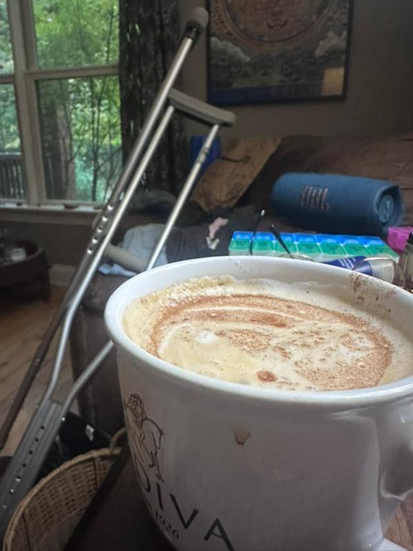 I splurged this week, and bought a gently used gourmet coffee maker and it has brought me so much happiness. Matt, my barista, has been whipping me up a double Cappuchino "Matt's way" with a little sweetener and cinnamon every morning. I am spoiled!