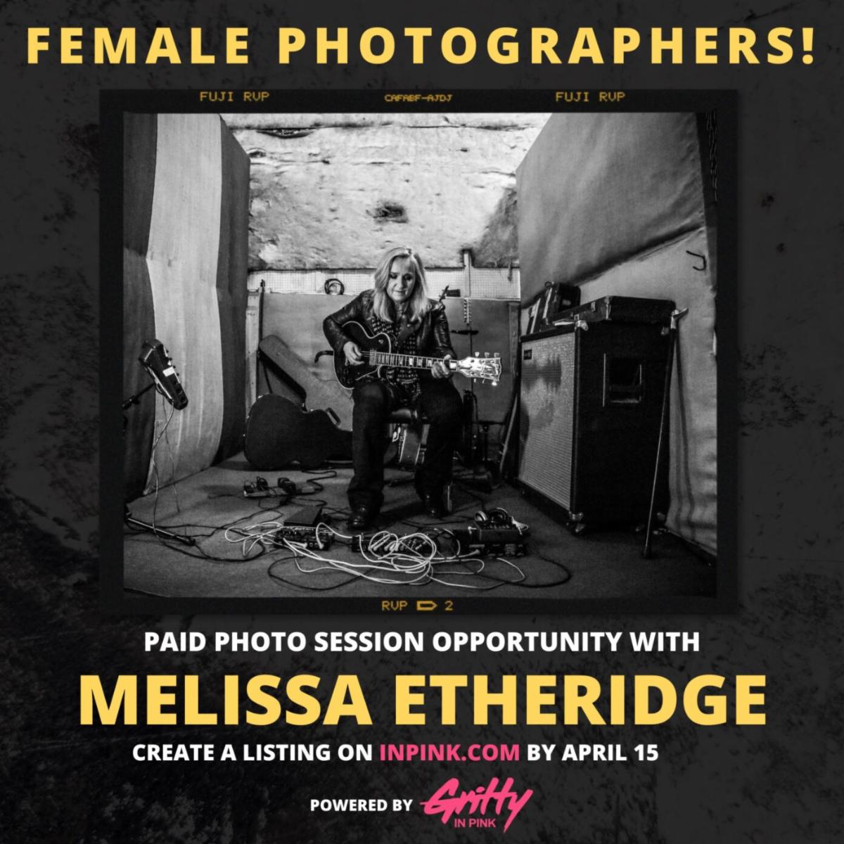 Calling all female photographers! Gritty in Pink is teaming up with Melissa Etheridge to find one talented photographer to shoot her next press and live photos at her L.A. show on April 22. From April 6-15, you’ll have the opportunity to submit your work to Gritty In Pink’s new marketplace at INPINK.com for a chance to be hired for $1,500! This platform is designed to help women get hired for creative and professional work in the music industry. More>>