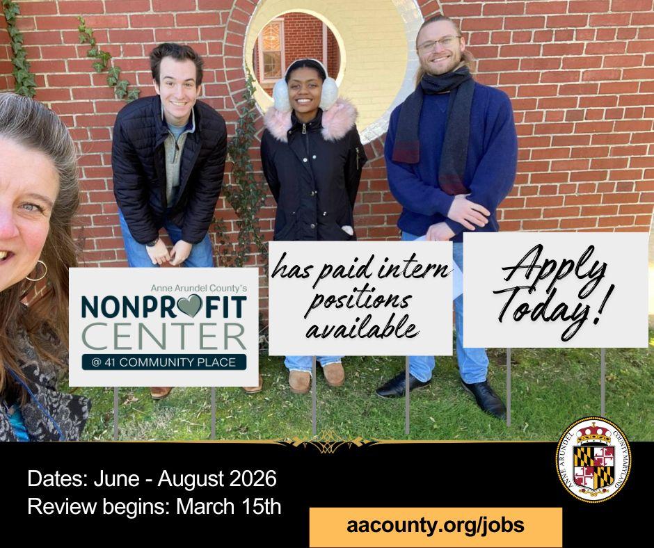 Anne Arundel County Workforce Development Corporation is seeking businesses (including nonprofits) to host interns (paid by AAWDC) as part of its FutureSuccess program.