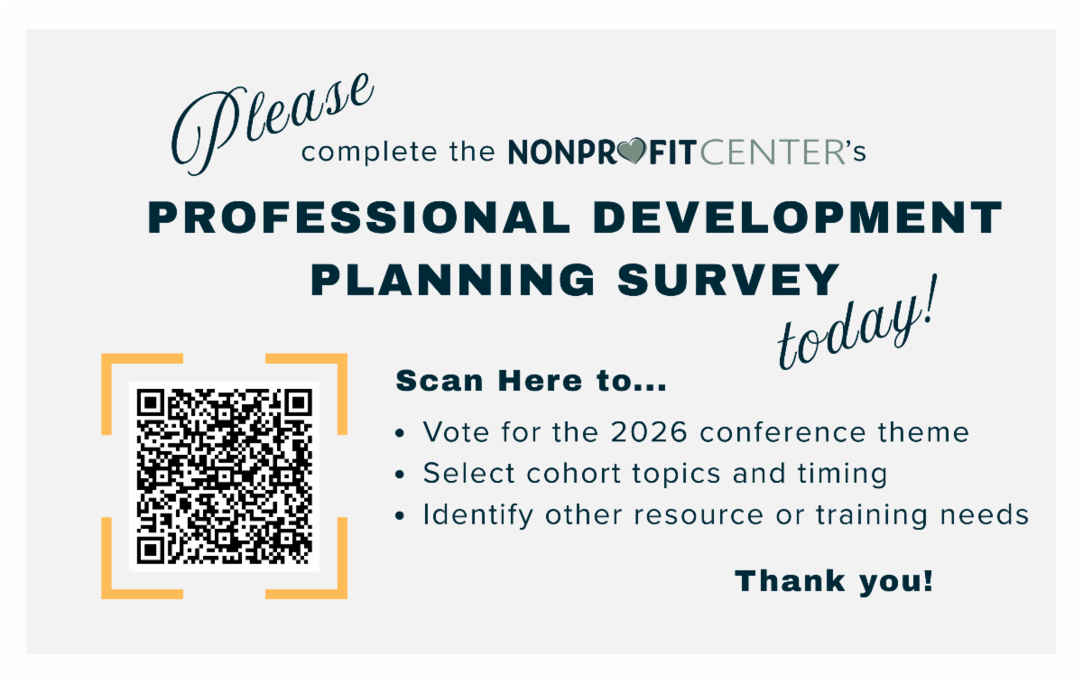 | | Official Ribbon Cutting is July 29th. Join Us! | | | | County Executive Steuart Pittman will officially open the newly-renovated, 13,000+ square foot facility in Crownsville by introducing its first three resident organizations. We invite you to be part of this special occasion on July 29th and learn more about how your 501(c)(3) nonprofit can benefit from the Nonprofit Center’s capacity-building programs. Please let us know if you can attend. | | The Nonprofit Center is open for tours and meetings on Tuesdays, Wednesdays, and Thursdays from 9am to 5pm through August 15th. | | Professional Development Planning Survey | | It's time to plan the FY26 professional development calendar, and we need your input. Like last year, the NPC intends to host the annual conference in March and two cohort programs, one this fall and one in the spring. We know you have other needs, too, and want to ensure that we continue to provide the most relevant and beneficial resources for your organization. So, please share your requests for other types of programming as well. We are here to support you, and we need your input. Click HERE or scan the QR code below. | | NPC Jobs and the NPC Job Board | | Last month, we announced that two new positions were approved in the FY26 county budget. They were posted a week later, and the response has been incredible. As of yesterday, there were 352 applications for the positions combined. The county's Office of Personnel has been busy, and their work won't stop any time soon because we're posting two part-time, contractual positions this week. If you know anyone looking for part-time work in the afternoons and evenings, please share this opportunity. | | |