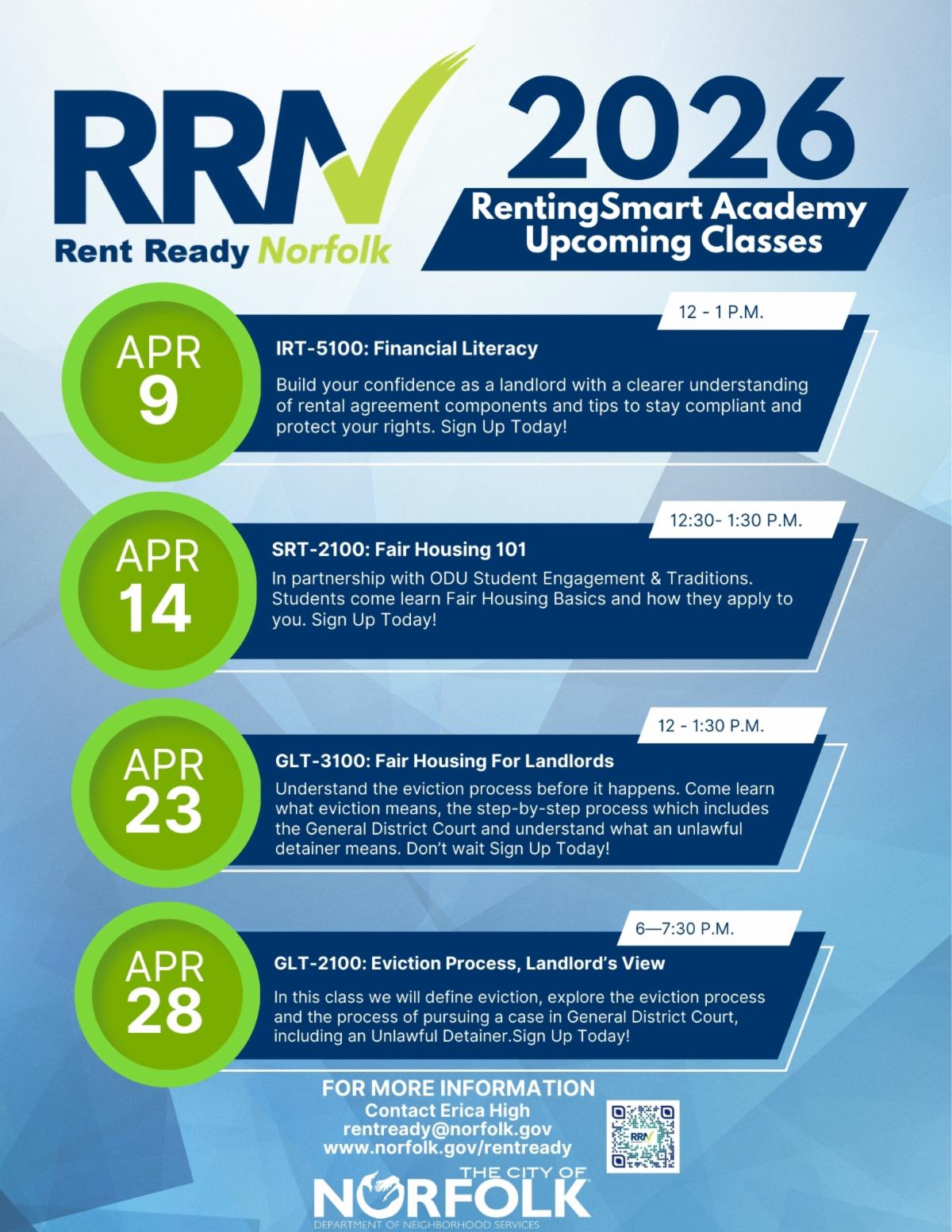 New classes are starting this April, and registration is now open. Don’t miss out! Learn more and register at Norfolk.gov/RentReady
