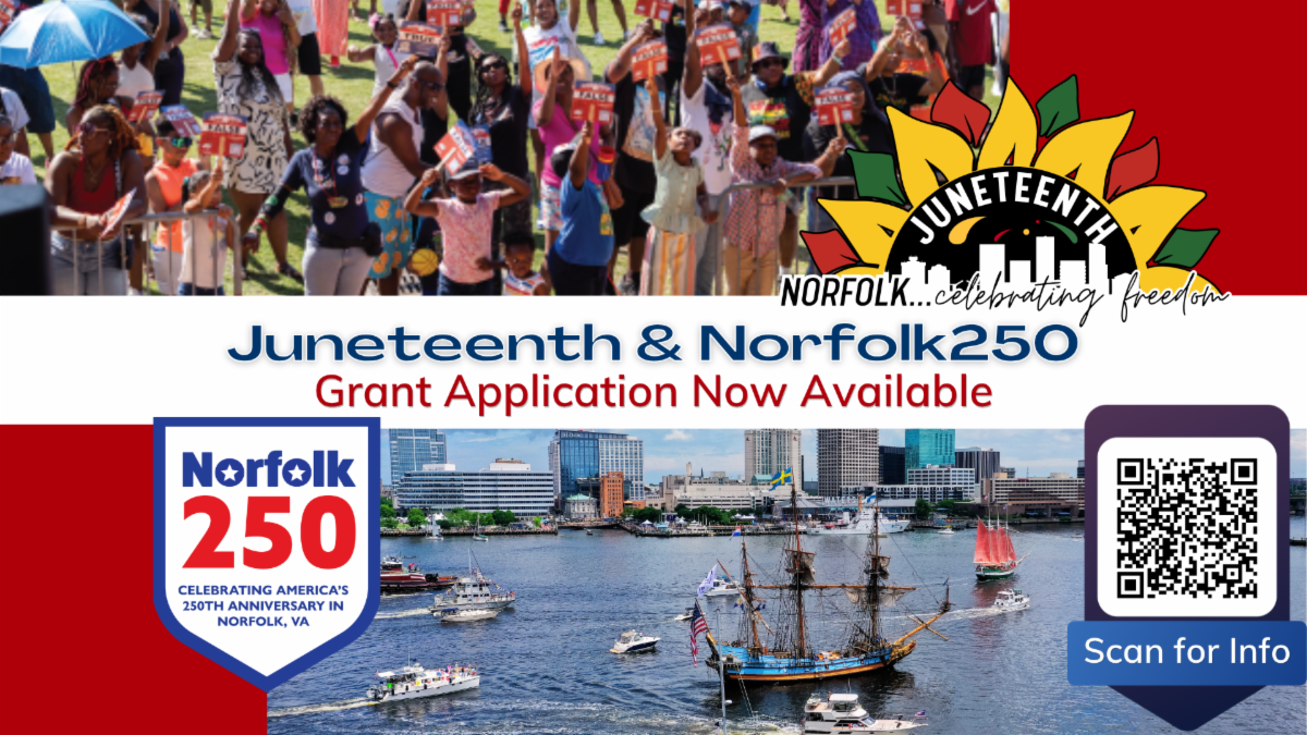 To support grassroots participation, the City is launching the Juneteenth and Norfolk250 Grant Program, offering funding to Norfolk-based community groups, nonprofits and neighborhood organizations interested in hosting events that celebrate multiculturalism across Norfolk. Eligible activities may include cultural programs, educational workshops, block parties, performances and other events that encourage community engagement around liberty, unity and shared history.