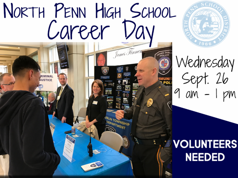 Brought to you by the North Penn Alumni Association and the NPHS College and Career Center, NPHS is hosting a Career Day for students in grades 10 through 12 on Wednesday, September 26 from 9:00 am to 1:00 pm.