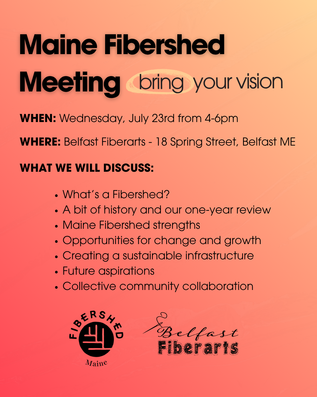 Many thanks to Alice Seeger of Belfast Fiberarts for offering her space to us for this meeting.