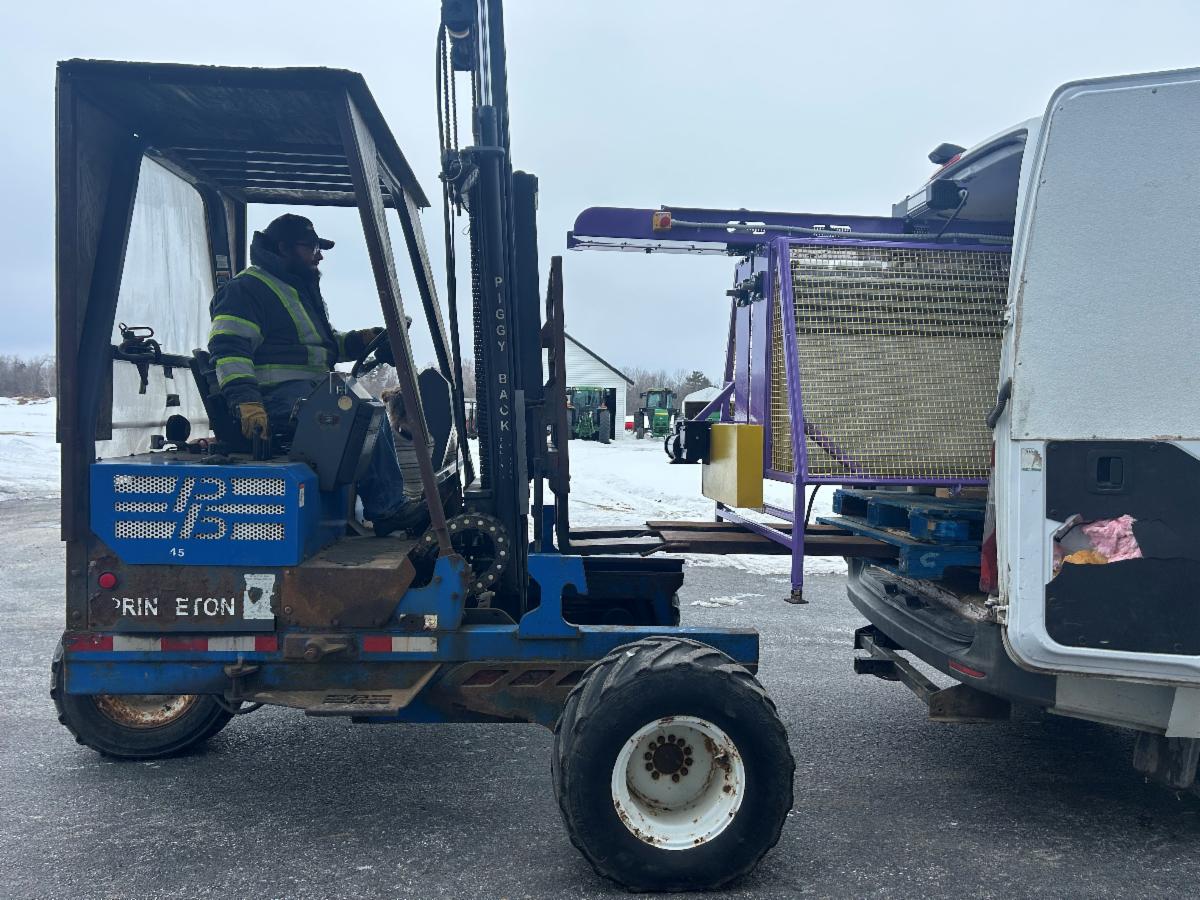 daughter Lily from Nova Scotia to the Borderview Research Farm in Alburgh, Vermont to hand-deliver a new hemp fiber hackler to the UVM extension NWCS team. They managed to fit the machine into the back of a sprinter van, and our farmhand, Travis Driver, also managed to lift it out in one piece.