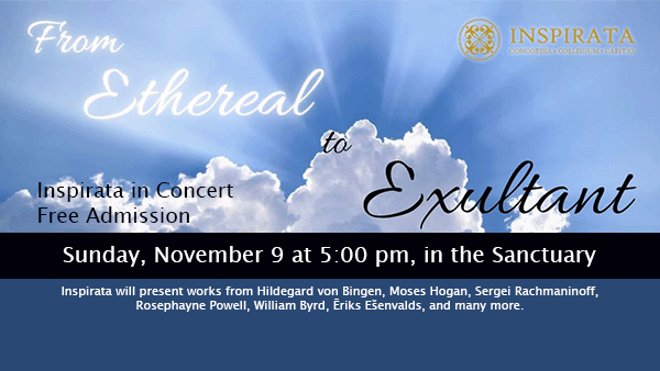 11/09 Inspirata Concert, 5:00 pm in the Sanctuary