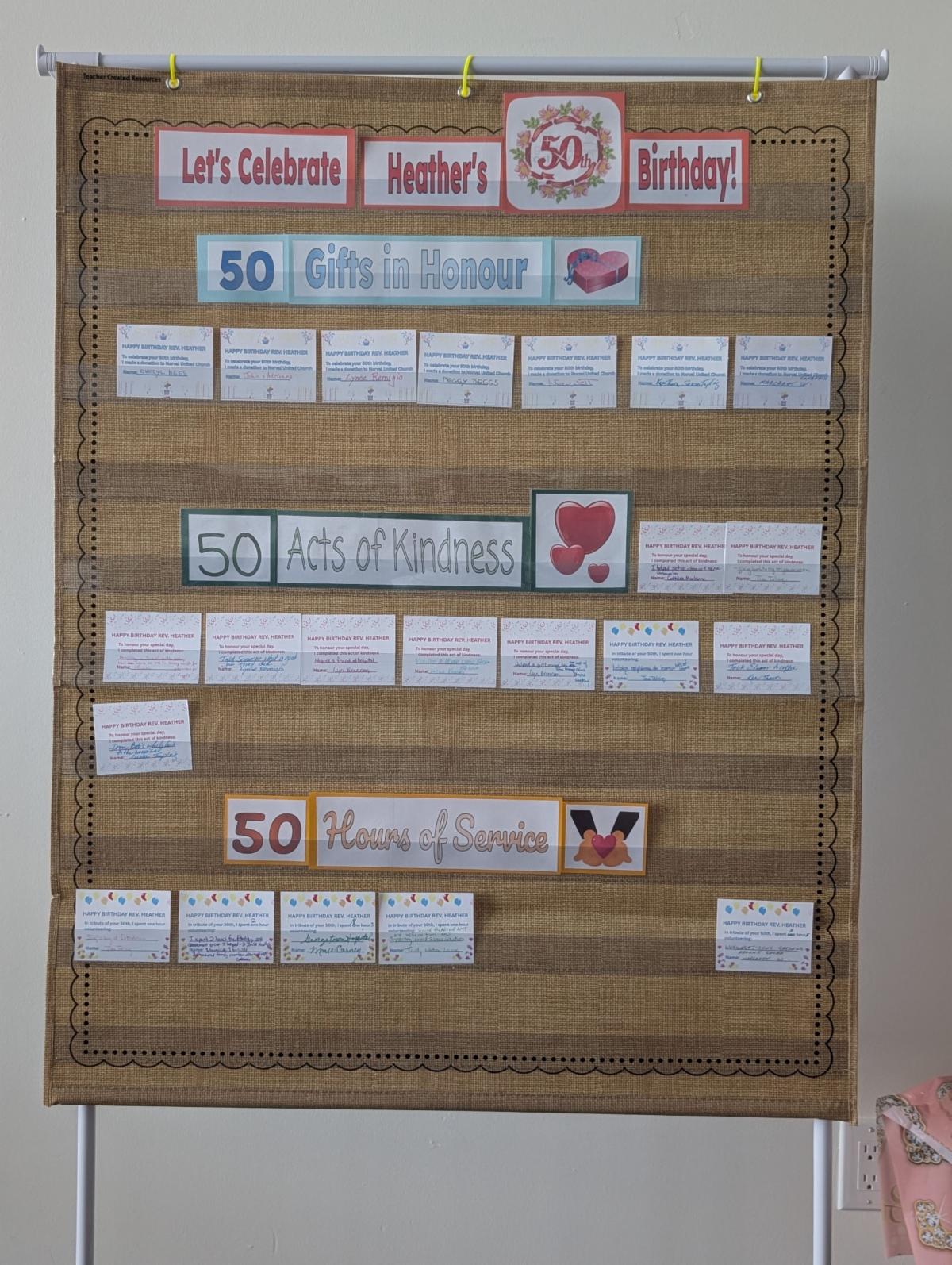 Until the end of October birthday cards are available for you to write down your donation, volunteer hours, or act of kindness and will be displayed to the birthday wall. If you are part of our online community, email office@norvalunited.ca when done something kind, we will add your note to the wall.