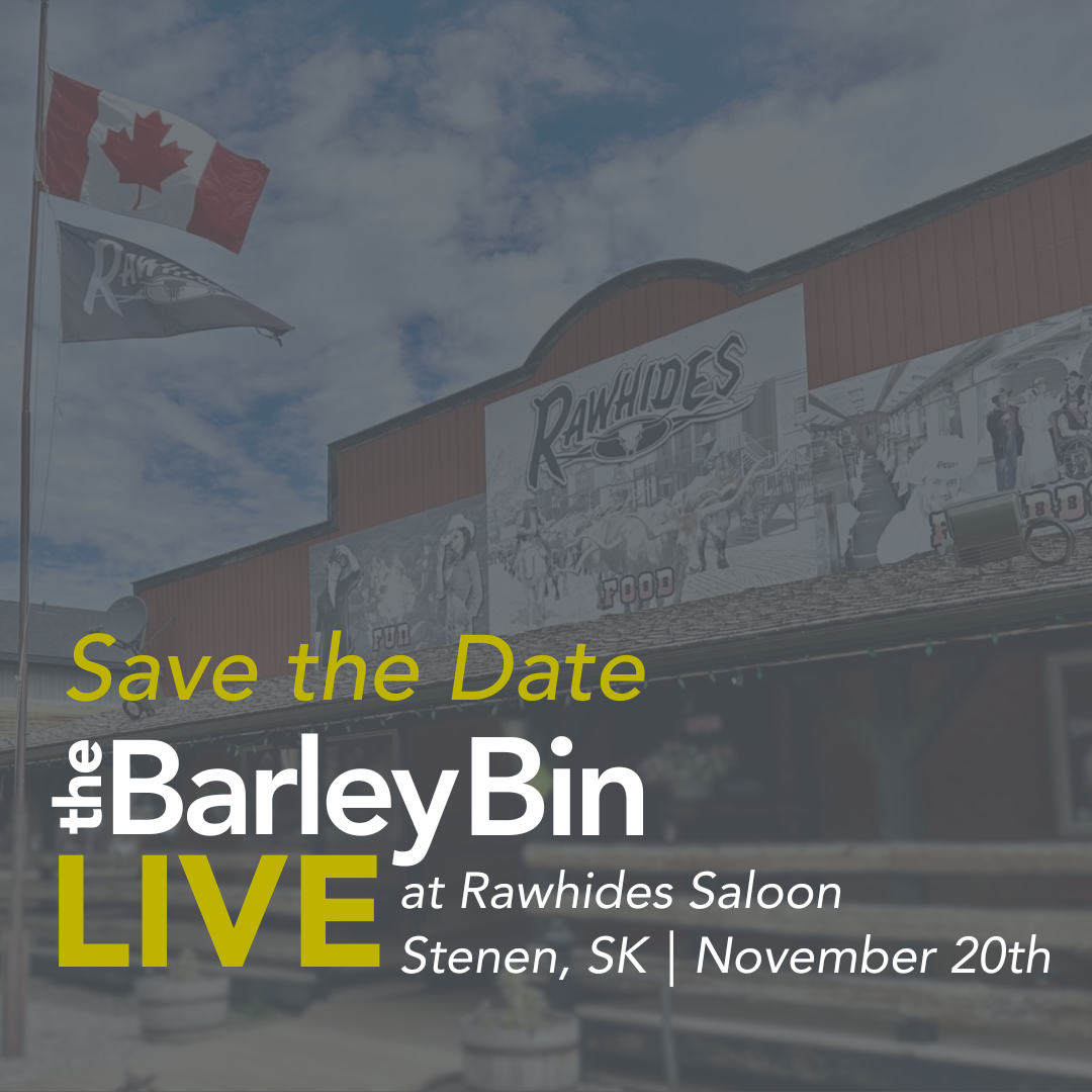 SaskBarley is thrilled to announce BarleyBin LIVE 2025 on November 20 at Rawhides Saloon in Stenen, SK.