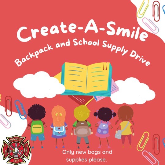El Departamento de Bomberos de Redwood City está recolectando mochilas nuevas y útiles escolares para estudiantes de todos los niveles escolares. Del 15 de julio al 15 de agosto, encontrarás barriles de donación en las estaciones de bomberos de Redwood City y San Carlos, en todas las ubicaciones de la Biblioteca Pública de Redwood City y en el Ayuntamiento.