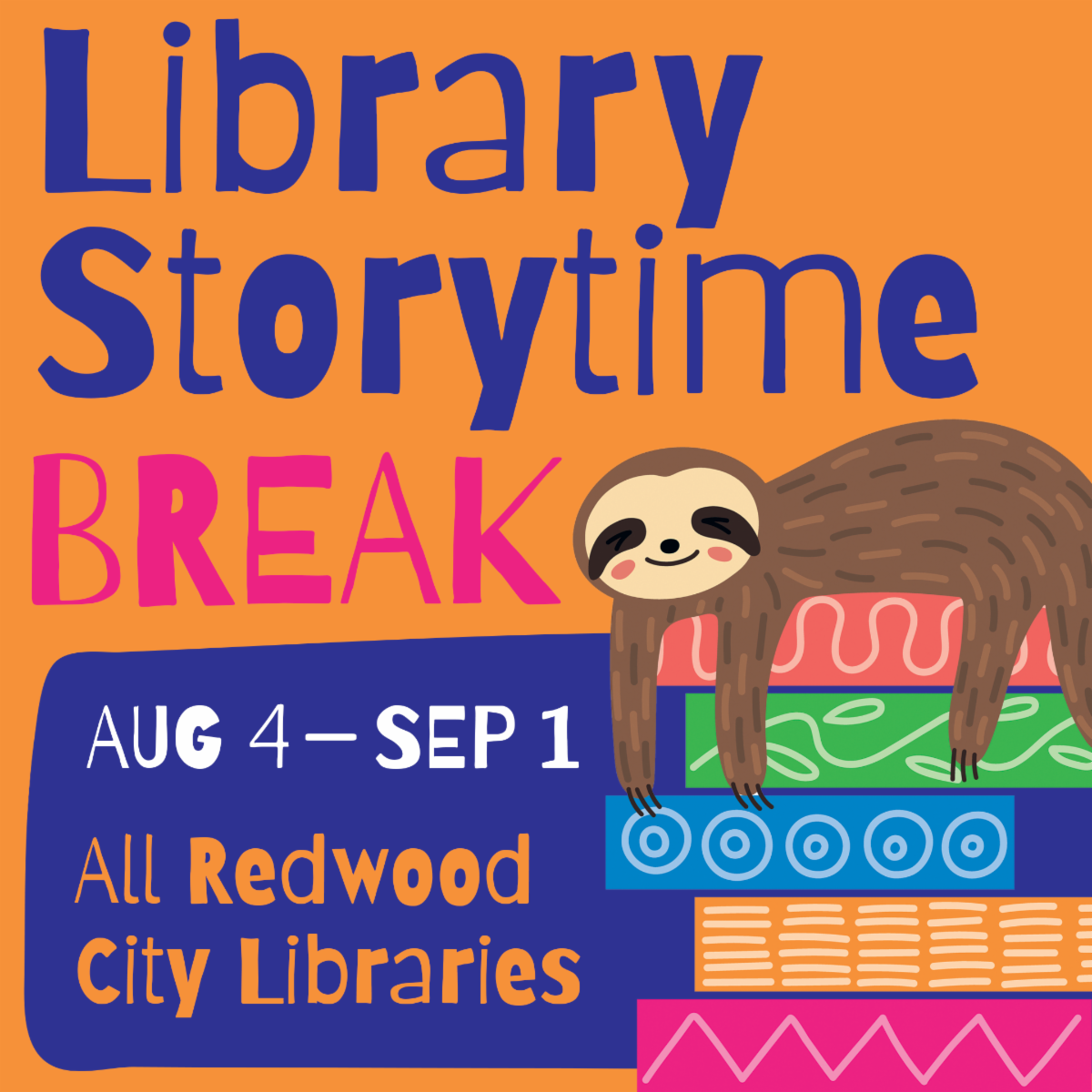 A partir del 4 de agosto y hasta el 1 de septiembre, nuestras horas de cuento en todas las sucursales harán una pausa para permitirnos prepararnos para el otoño. Los Cuentos en el Parque continuarán durante todo el mes de agosto — ¡esperamos verte en el parque!