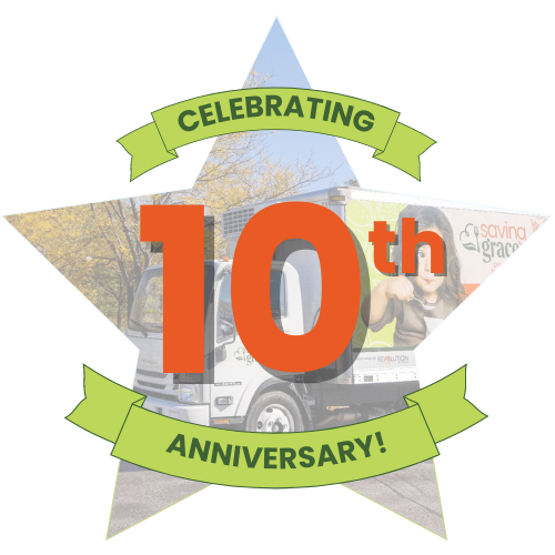 This focus continues to grow our network of food business partners committed to reducing wasted food. To highlight these partnerships, we’ve launched a new food donor recognition program. As you shop and dine out, look for the Saving Grace digital emblem and window decal that businesses can display showing they donate their excess food through Saving Grace.