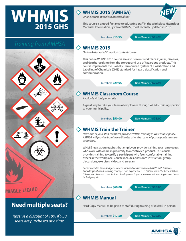 Did you know that AMHSA offers multiple online, classroom, and train-the-trainer options for your WHMIS 2015 GHS training?