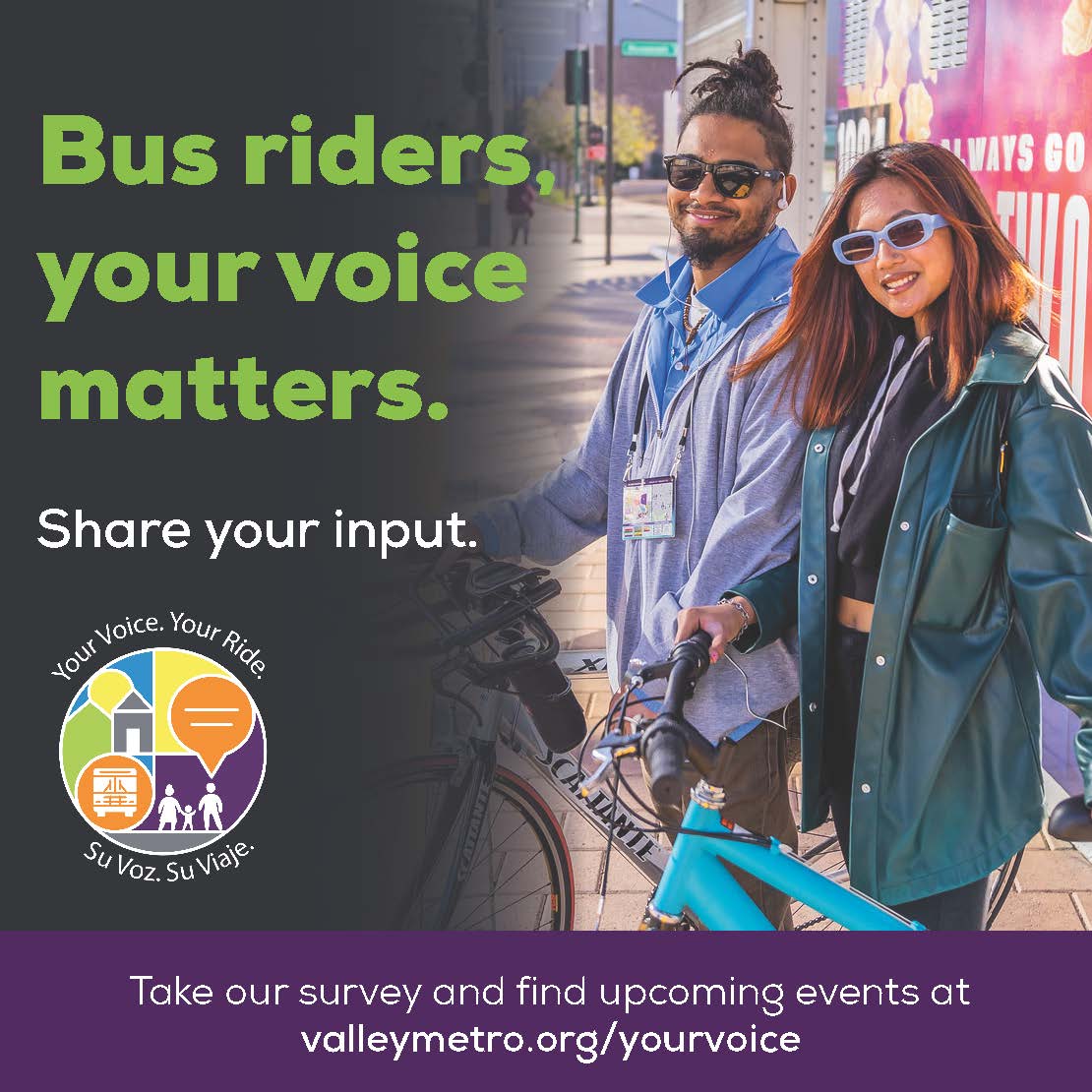 | | CITYWIDE HIGHLIGHTS & CALENDAR | | | | Valley Metro is seeking to redesign the region's bus network and needs your help to determine your preferences and how it can improve service. Take the survey to share your ideas! The survey is available until Nov. 30. | | | | |