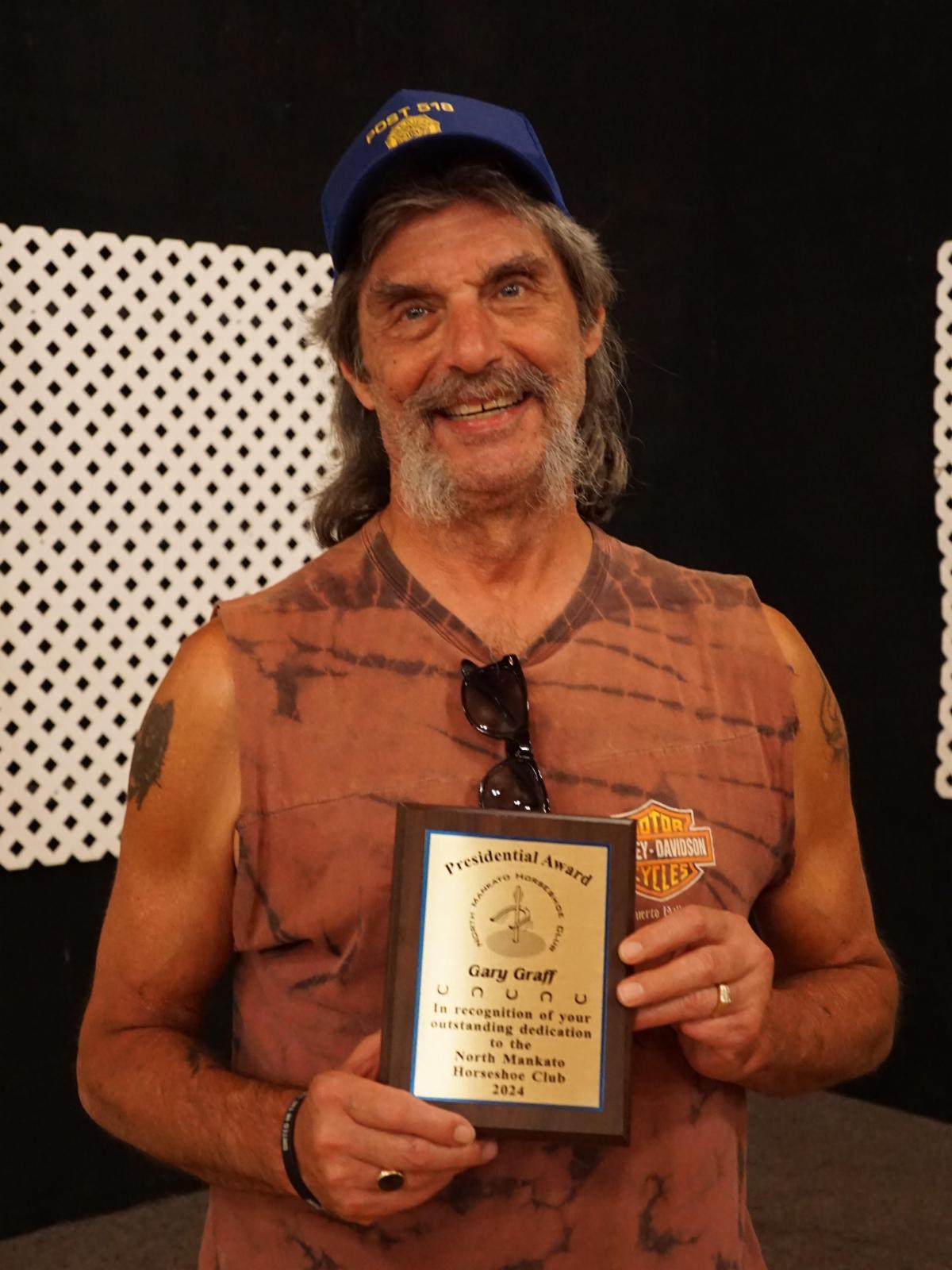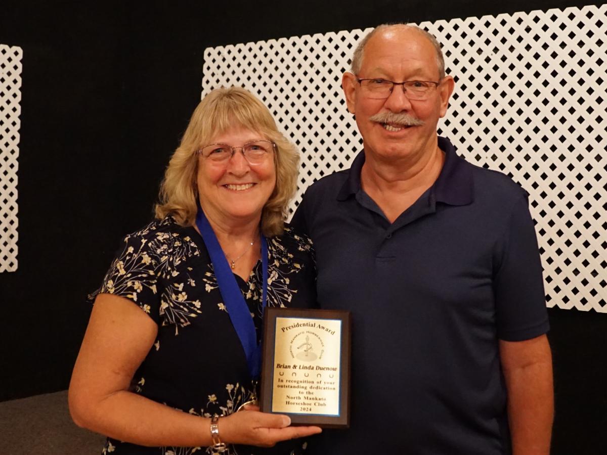 The Presidential Award was given to Gary Graff and Brian & Linda Duenow for their outstanding service & dedication to the North Mankato Horseshoe Club.