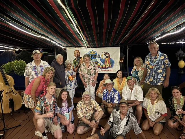 Six boats signed up to race and included various designs and lengths. PHRF ratings were used to keep things equal across the fleet. (Nobody signed up for the small boat race). Some boats started at the gun; others had to wait a few minutes, and one had to wait 6 minutes and 24 seconds to cross the start line. The course was a 4.25 mile backwards P. Sue and Ron Valitsky performed the functions of the committee boat, and three safety boats were on the water in case anyone needed help. (Dave and Sue Porter, Jim and Beth Chatham, and Sue Donnelly). The wind and weather cooperated and allowed all boats to get around the course and finish. Prizes were awarded to the top three finishers (A bottle of coconut rum for 1st place, a coconut themed yard flag for 2nd, and a coconut pie for 3rd).