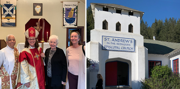 Sunday Afternoon: Bishop Megan (assisted by Deacon Pamela Moore), at the closing Eucharist for The Mission of St. Andrews' in The Redwoods. | |