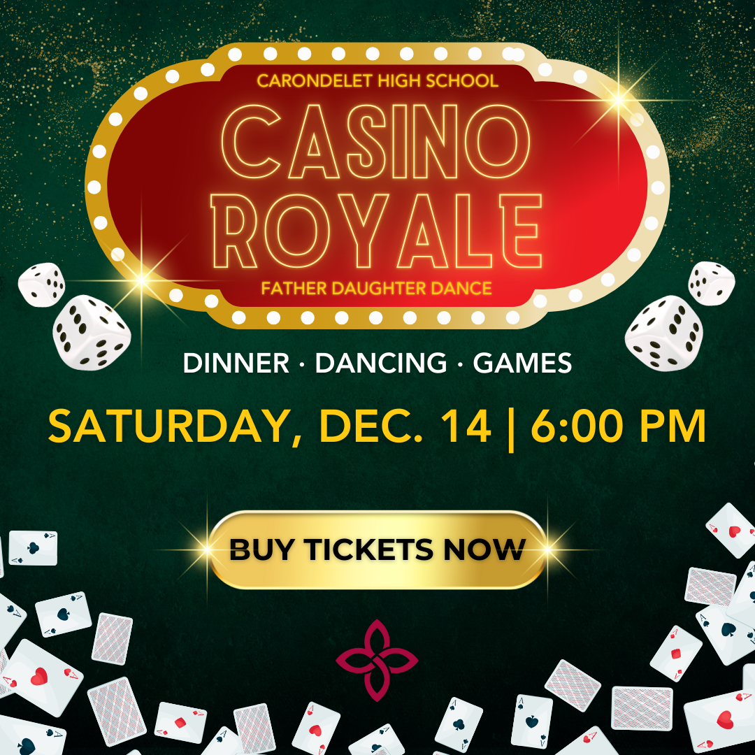Get your tickets now for this super fun and memorable event for Carondelet dads and daughters on Saturday, December 14 from 6:00 to 9:00 PM. This year’s theme is the Carondelet Casino Royale. Come have a fabulous catered dinner, dancing, unlimited photo booth, and lots of casino games! Hurry before tickets are sold out. REGISTER TODAY!