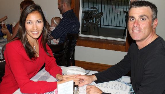 A couple looks on in awe as a flaming dish of saganaki arrives at their table, ready to be savoured over a leisurely dinner on an outdoor patio against the backdrop of a gorgeous, early autumn sunset on the Welland Canal.