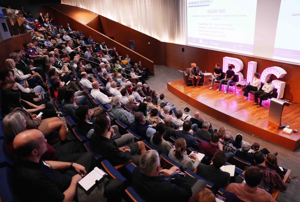 This Fall’s Advantage Greenville forum buzzed with excitement as leaders from Google, dotflo, and Build Carolina convened for an impactful discussion surrounding AI and the future of business. We started the morning with coffee and connection; our networking portion of the event brought together a broad audience ranging from business executives and civic leaders to Furman alumni, staff, and faculty.