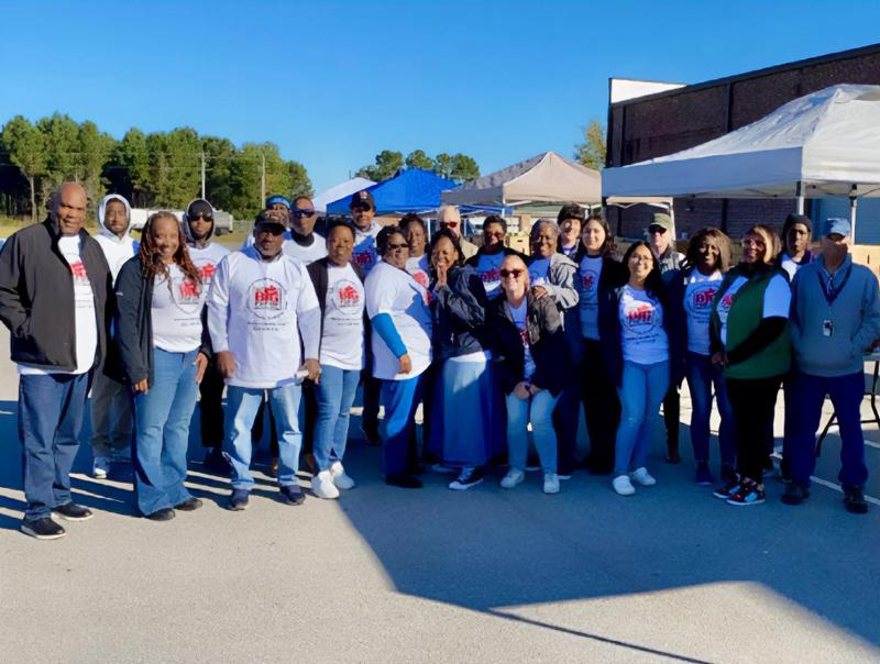 Blue Ridge Community Action Executive Director Stephanie Ashley, Economic Improvement Council Executive Director Dr. Landon B. Mason Sr., NCCAA Executive Director Sharon Goodson and Bill Bradley of the Ballantyne Insurance Group pitch in at the recent Big Pop Up sponsored by Blue Ridge Community Action in Morganton | |