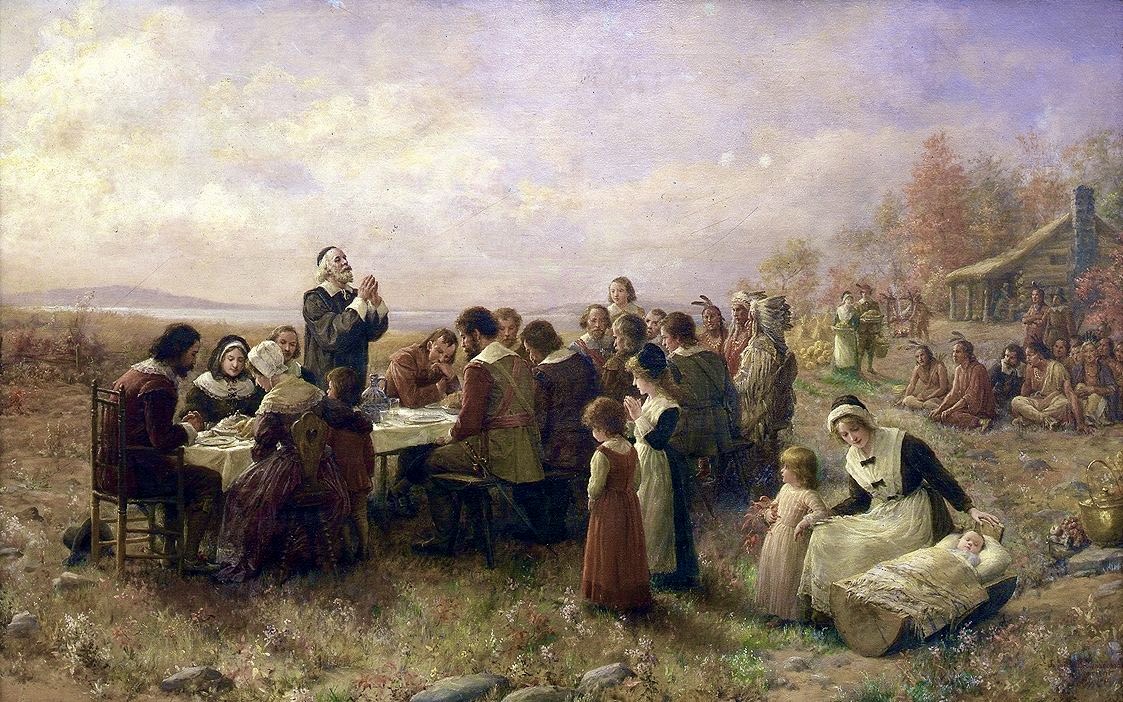 There is another historic painting with which you should be familiar. It is "The First Thanksgiving at Plymouth" by Jennie Augusta Brownscombe painted in 1914.