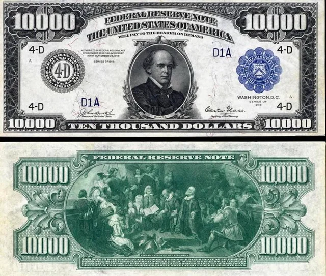 The "Embarkation of the Pilgrims" is a fairly large painting and is very impressive to see. So impressive that it is printed on the back of the U.S. Ten Thousand Dollar Bill. The next time you're out shopping, flip one of your $10,000 dollar bills over to see the painting. | |