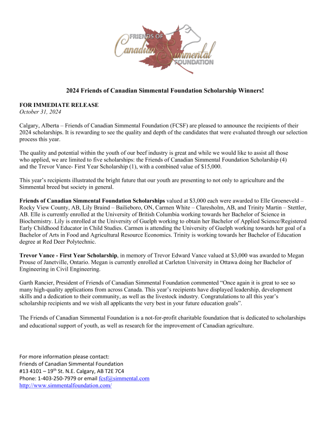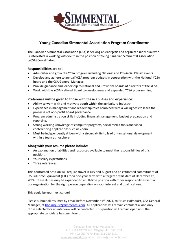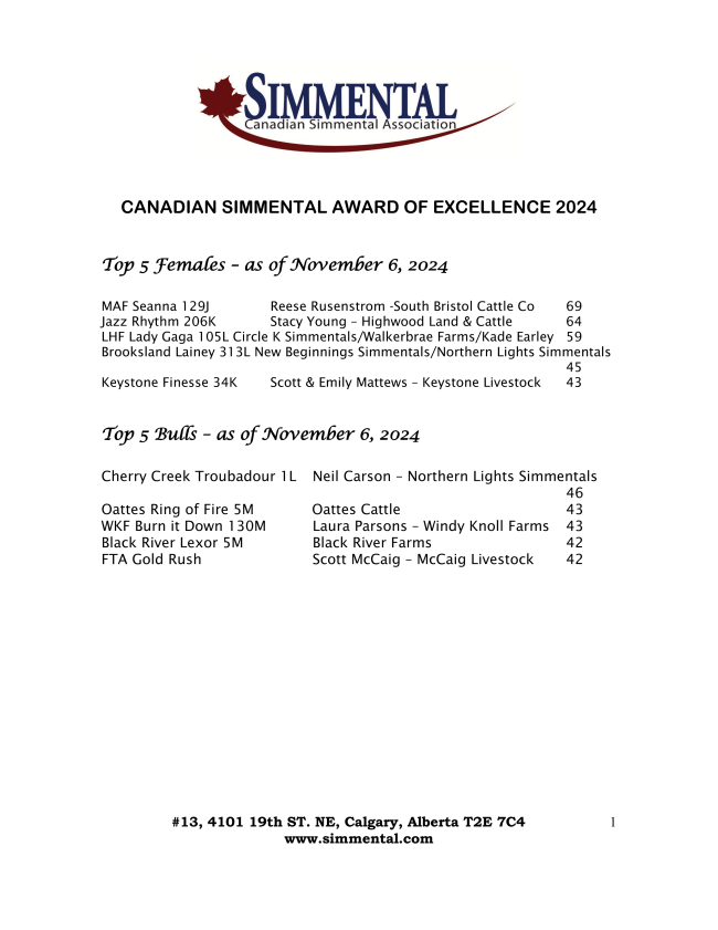 THE herds enrolled by this date pay $22.00 per female. Online Simmental.com users benefit by saving $2/head when enrolling online by December 15th, 2024.