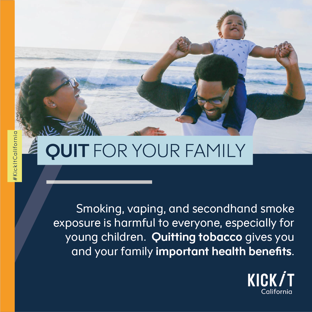 This fall, protect your loved ones from smoking, vaping, and secondhand smoke. Children are especially vulnerable — secondhand smoke can cause serious health problems. Visit KickItCA.org for free support to help you or someone you love #QuitSmoking or #QuitVaping.