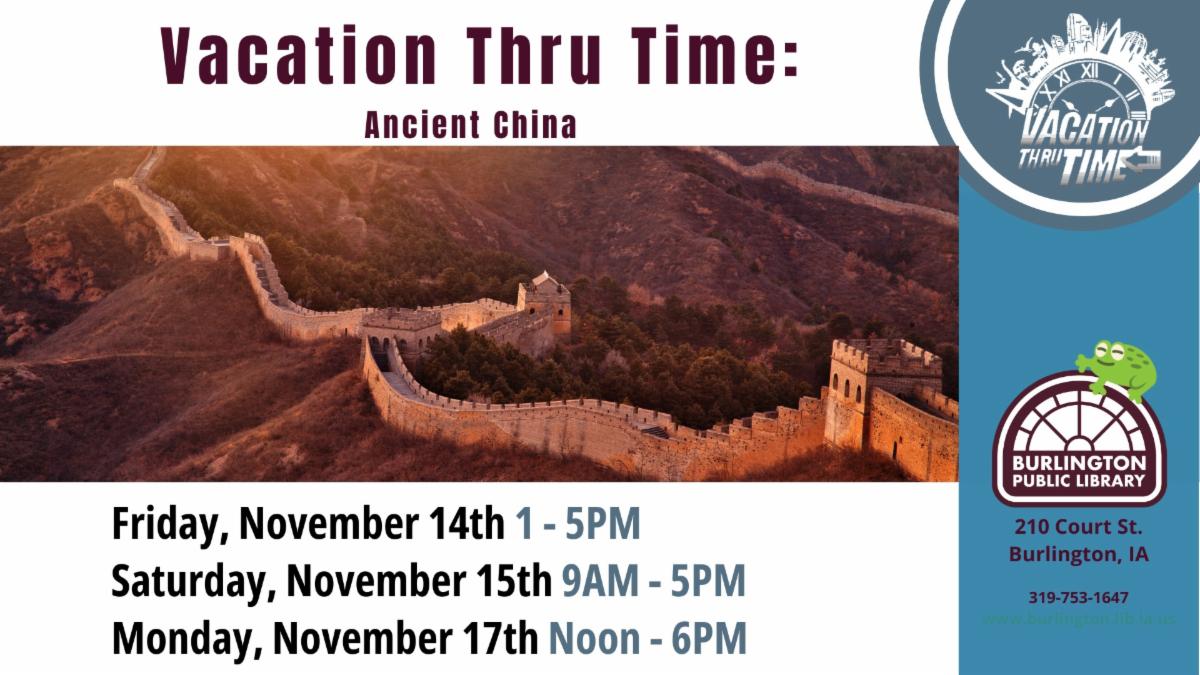 Vacation Thru Time: Ancient China at the Burlington Public Library