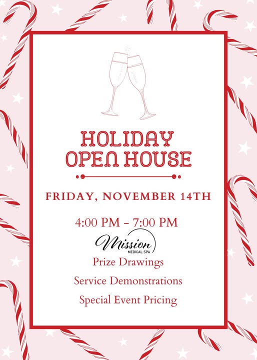 Mission Medical Spa invites the community to its annual Holiday Open House on November 14. This festive event will feature a special prize drawings, exclusive holiday specials, seasonal drinks, live demonstrations, and more, making it a perfect way to kick off the holiday season.
