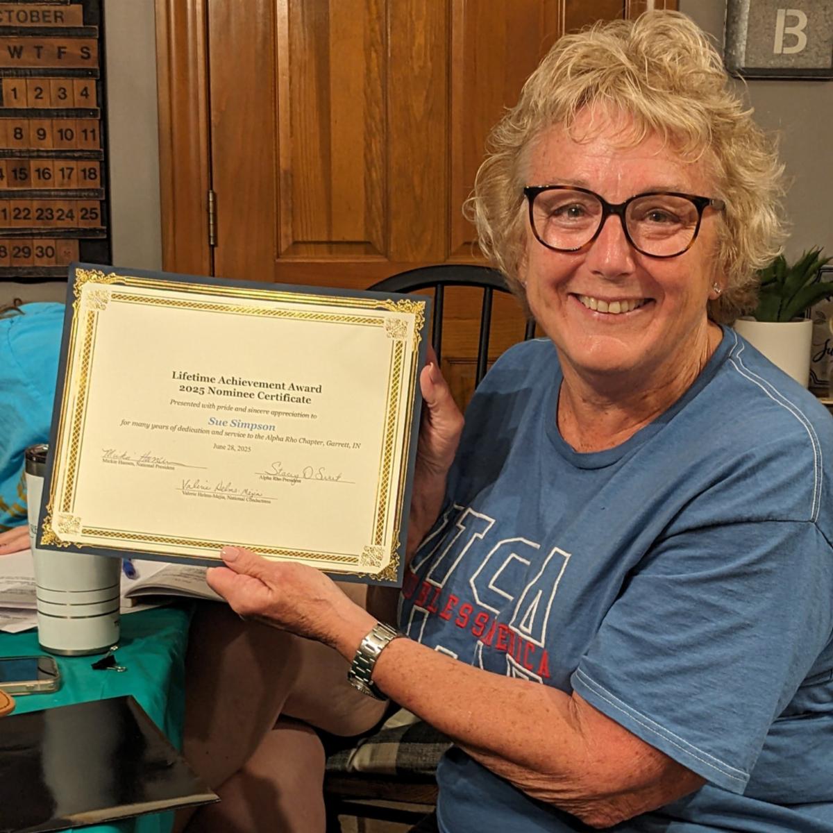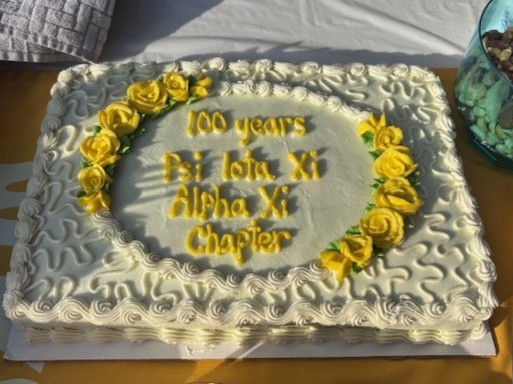 The Alpha Xi Chapter, established on August 21, 1925, in Logansport, IN, recently celebrated 100 years of service to Psi Iota Xi and their community. Members enjoyed an evening picnic complete with a celebratory cake. Attendees reminisced about past fundraiser and philanthropic projects, National Conventions, and President Sandra Shaffer shared fun facts from the past 100 years. Chapter scrapbooks and past Helicons were on hand for everyone to enjoy. Mary Ann Delnnocentes was named the 2025 Alpha Xi Psi Ote of the Year. Each sister received a memento gift to remember the centennial celebration.