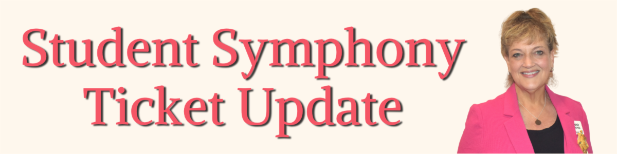I want to extend my thanks to all those who submitted applications for the student symphony tickets. I am in the process of getting tickets to those groups. There are still tickets available for the Evansville, Muncie, and South Bend symphonies. Please send me an email if you have a group that would enjoy attending one of their performances and I will send you an application.
