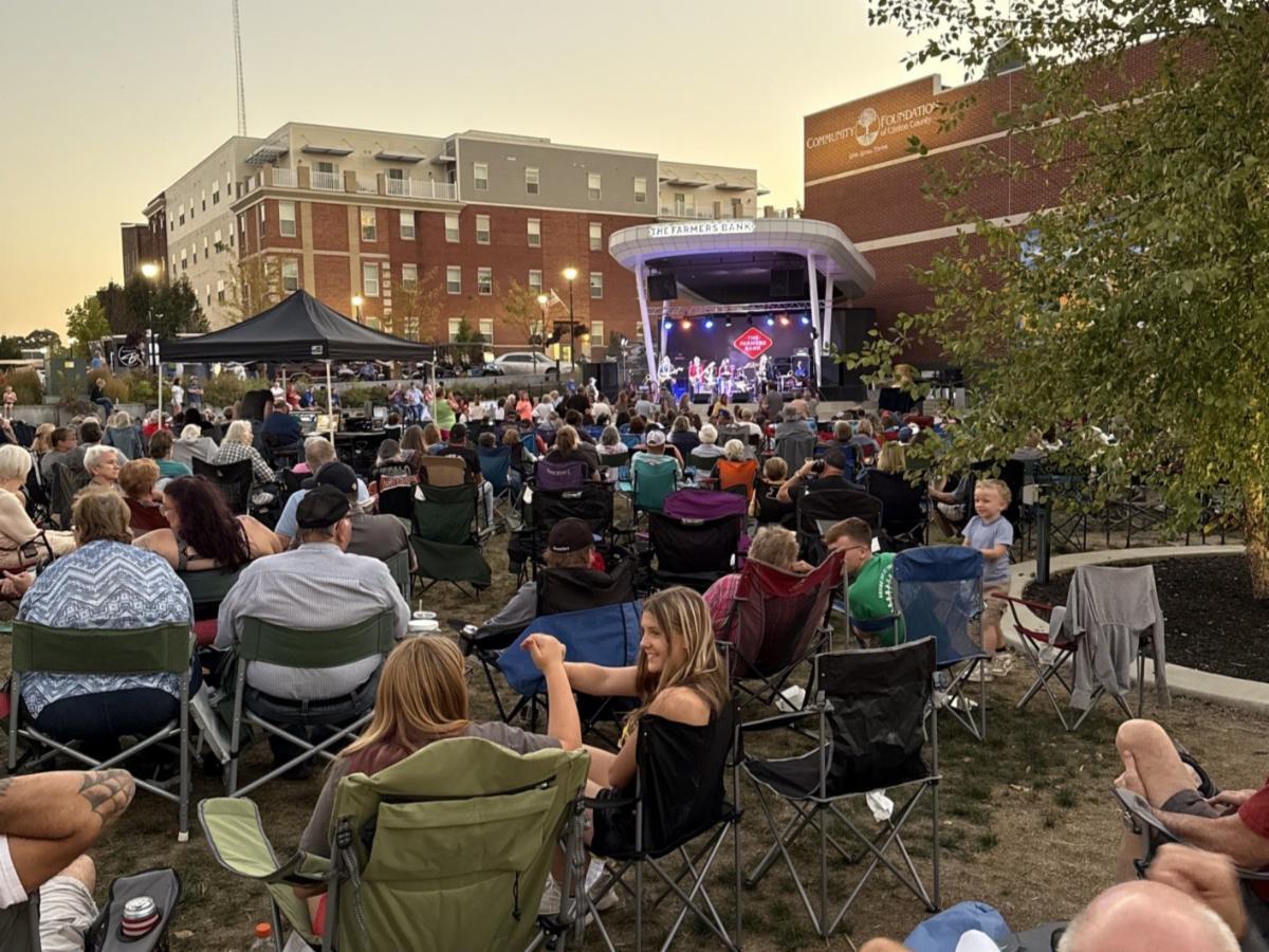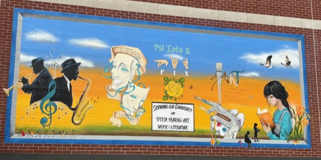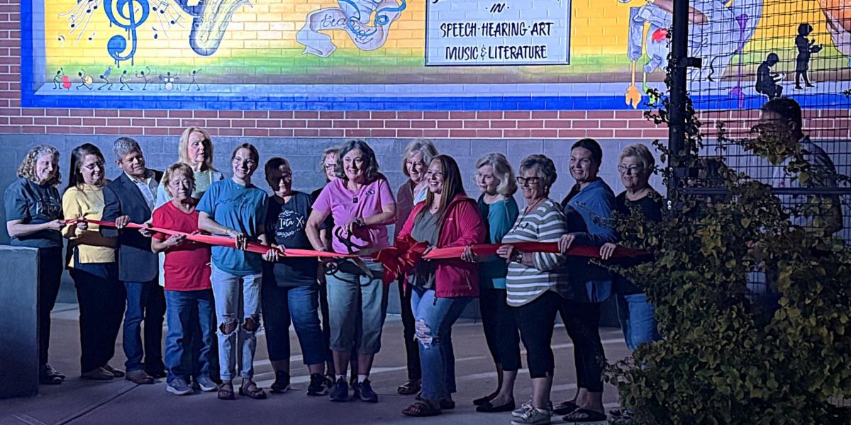 The Chamber of Commerce, Mayor, Judy Sheets, and the Frankfort Parks Department coordinator, Kim Black, organized a ribbon cutting and dedication when the mural was complete. On Saturday, October 3, 2025, our beautiful mural was dedicated. The Farmer Bank sponsored the stage area, and Bob Seger and AC/DC cover banks provided entertainment. Beth Keeney, PIX National President in 2017-2018, thanked everyone in the community and the Psi Iota Xi members for earning the funds that created the newest community artwork. She thanked Ricardo and others involved in making this vision a reality.