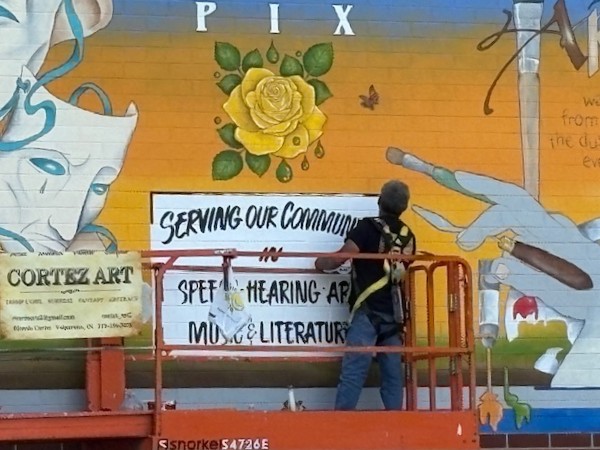 The scope of the mural was put in writing, and the bidding process began. Local artist, Ricardo Cortez, was chosen to design and paint the mural. He wanted to help us tell our story through his detail and design. Ricardo also wanted others to be a part of this beautiful artwork, so he enlisted help from additional artists during this journey. His passion for what he does shines through.