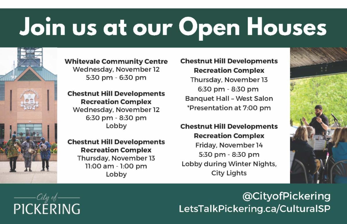 | | Upcoming Festivals & Events | | Join us as we have an assortment of great events to engage in all year round. The City of Pickering's Events Calendar and Festival Page are great resources to see upcoming City and Community Events. | | |