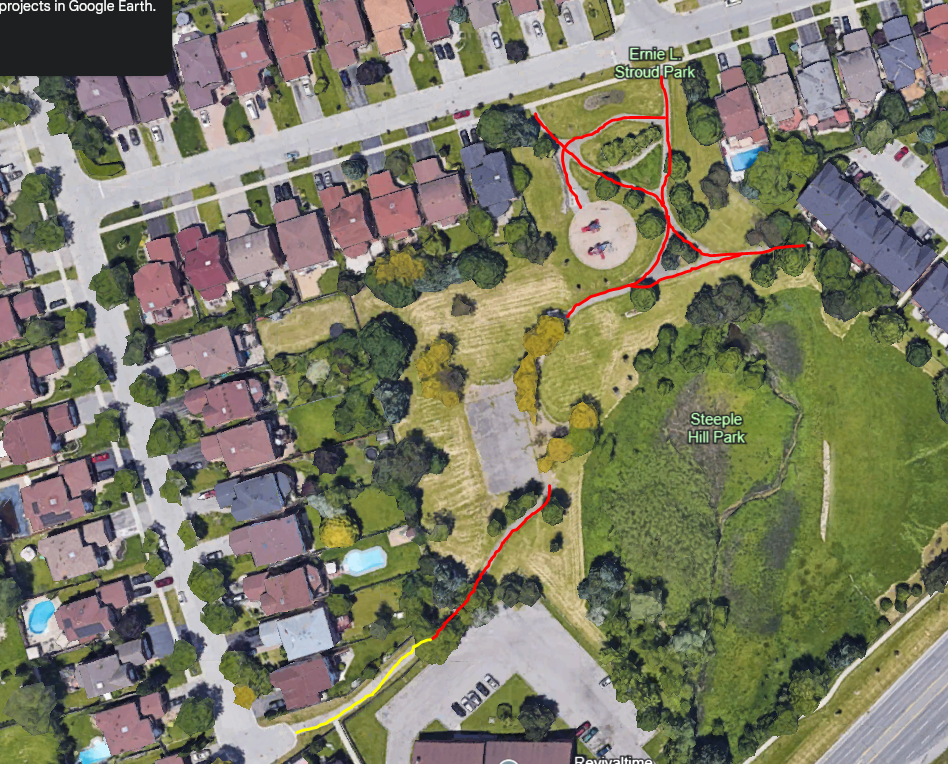 This initiative falls under the Pathway Reconstruction (Accessibility to Parks) Projects, which is an ongoing program that targets improvements of up to three park pathways annually, prioritized based on condition. Subject to budget approval, design work would take place in 2026 and construction in 2027. A markup showing the proposed Ernie L. Stroud Park pathway replacement areas (in red) is above. Please note that inclusion of the pathway connection to Lightfoot Place (in yellow) will need to be confirmed.