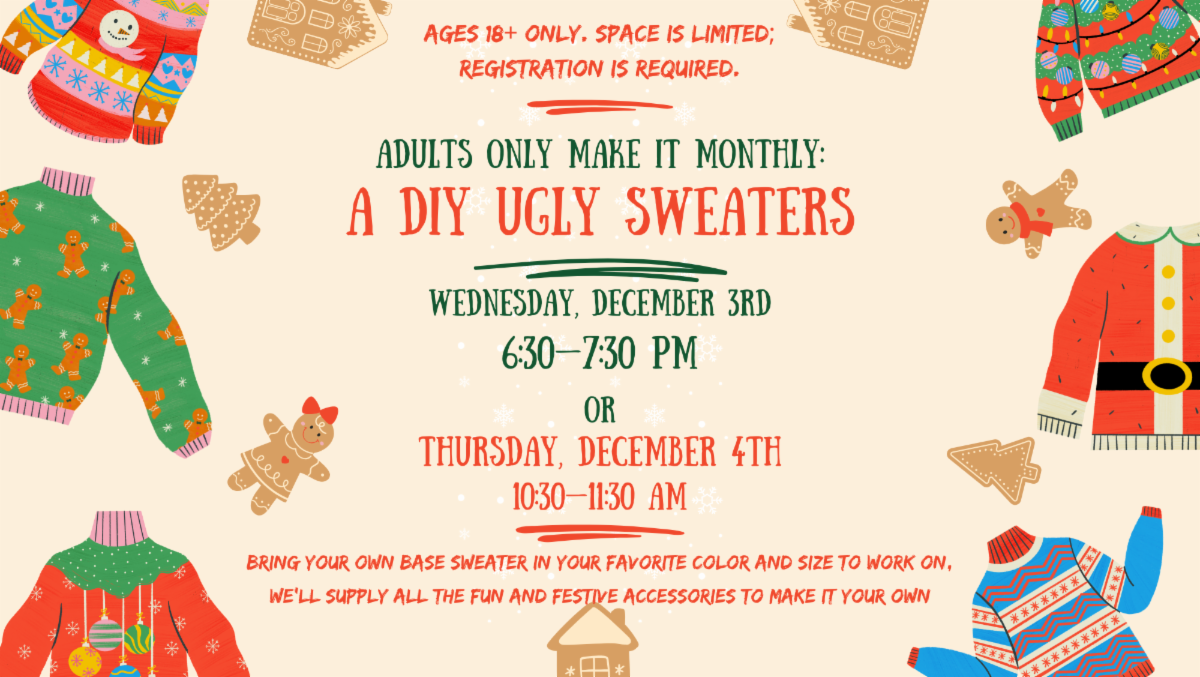 There are plenty of holiday presents right here at your library, from small beautiful artworks in the exhibit, to help from diverse community experts, to locally crafted goods made with care by your neighbors!