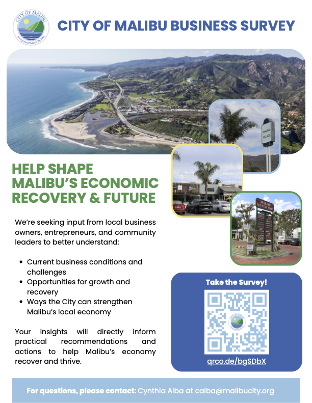 Each business in the community brings fresh energy, creates jobs, and builds the gathering places that make Malibu so special. This Small Business Saturday, the City encourages residents to shop and dine locally to help support Malibu’s ongoing recovery and keep the community strong.